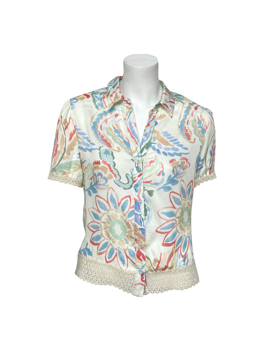 Point Zero Printed Lace Trim Blouse