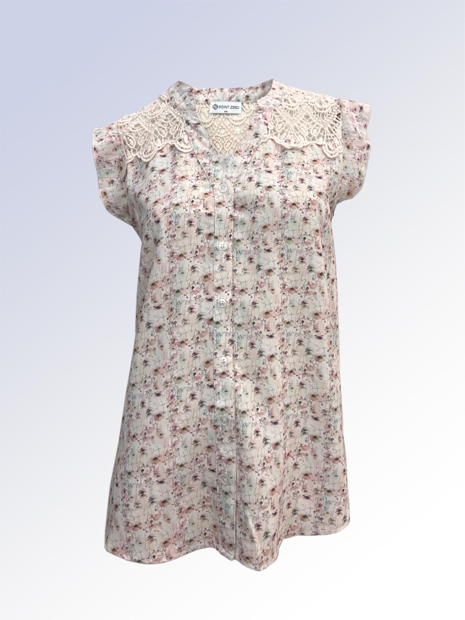 Point Zero Sleeveless Floral Blouse w/Lace