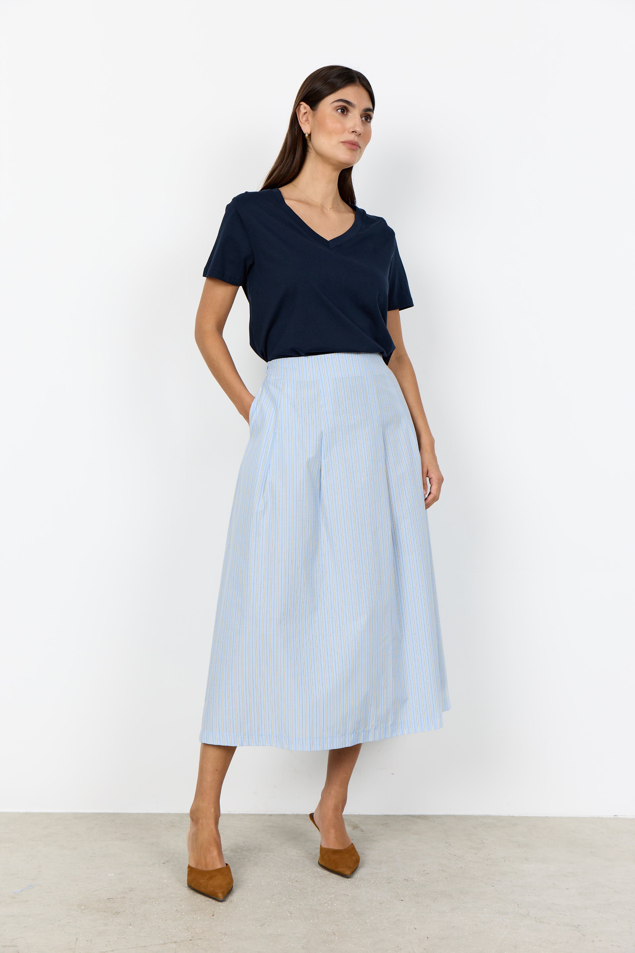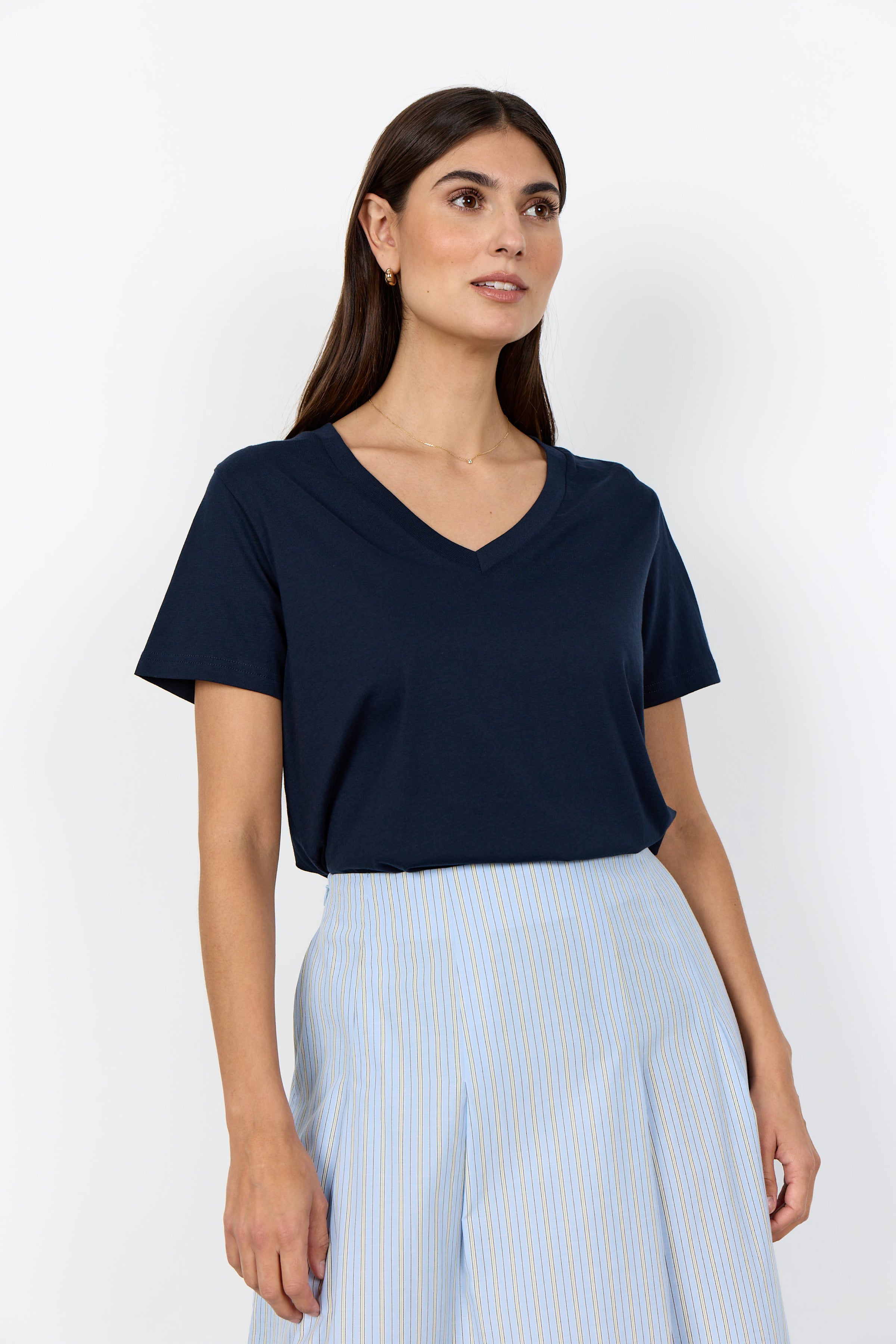 This Soya Concept Organic Cotton T-Shirt is a staple piece for any wardrobe. Made with 100% organic cotton, it features short sleeves and a classic v-neck design. Crafted with sustainability in mind, this shirt not only looks great but also has a positive impact on the environment. Perfect for everyday wear. Regular fit.