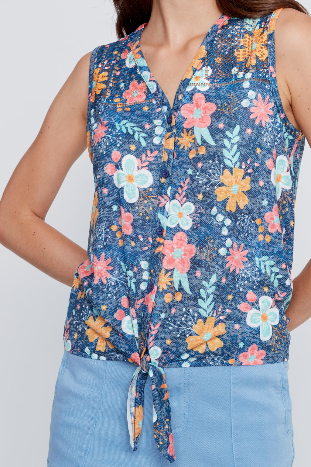 CYC Floral Front Tie Top